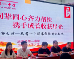 随后,14日上午10:30分“同辈同心齐力帮扶,携手成长收获星光”同辈帮扶开班仪式在焉耆一中报告厅隆重举行。本次开班仪式由焉耆县第一中学教务处主任张冬梅主持,焉耆县第一中学党委副书记、校长贺怡、太阳成tyc9728派驻焉耆县第一中学副校长杨海明、焉耆县第一中学教师代表高一年级组长徐莉等领导嘉宾、实践队指导老师朱禹诚及实践队全体成员共同参会。