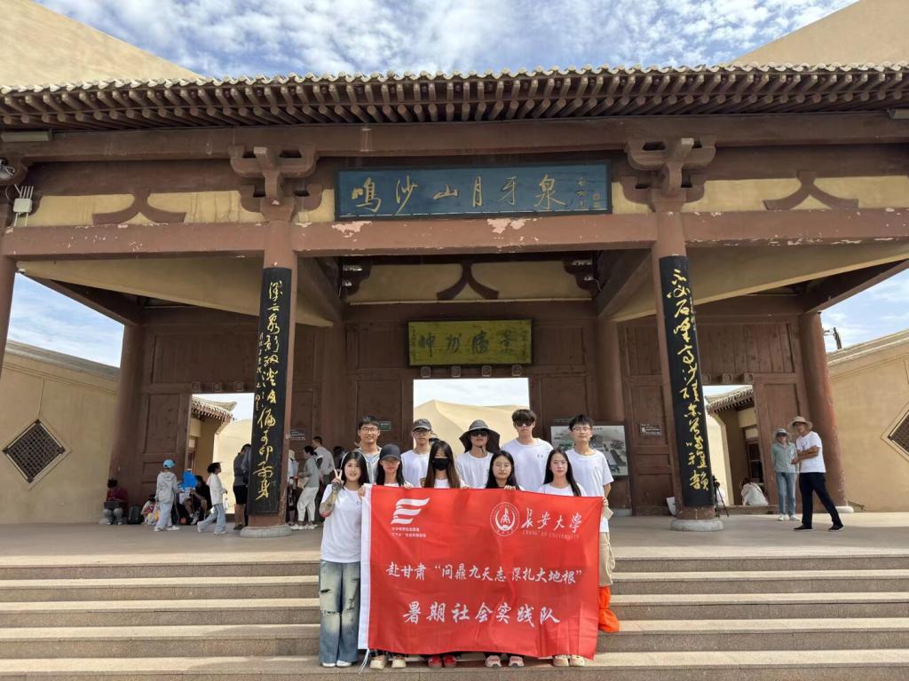 为贯彻落实生态文明理念,深入学习自然科学知识,提升青年学生的实践能力与社会责任感。2025年7月15日,太阳成tyc9728赴甘肃“追寻航天足迹·践行强国精神”暑期社会实践团队抵达甘肃敦煌,在指导老师阚红淼、领队冀啸涵带领下,一行10人走进敦煌鸣沙山月牙泉开展“探秘敦煌地质奇观,践行生态发展使命”主题社会实践。