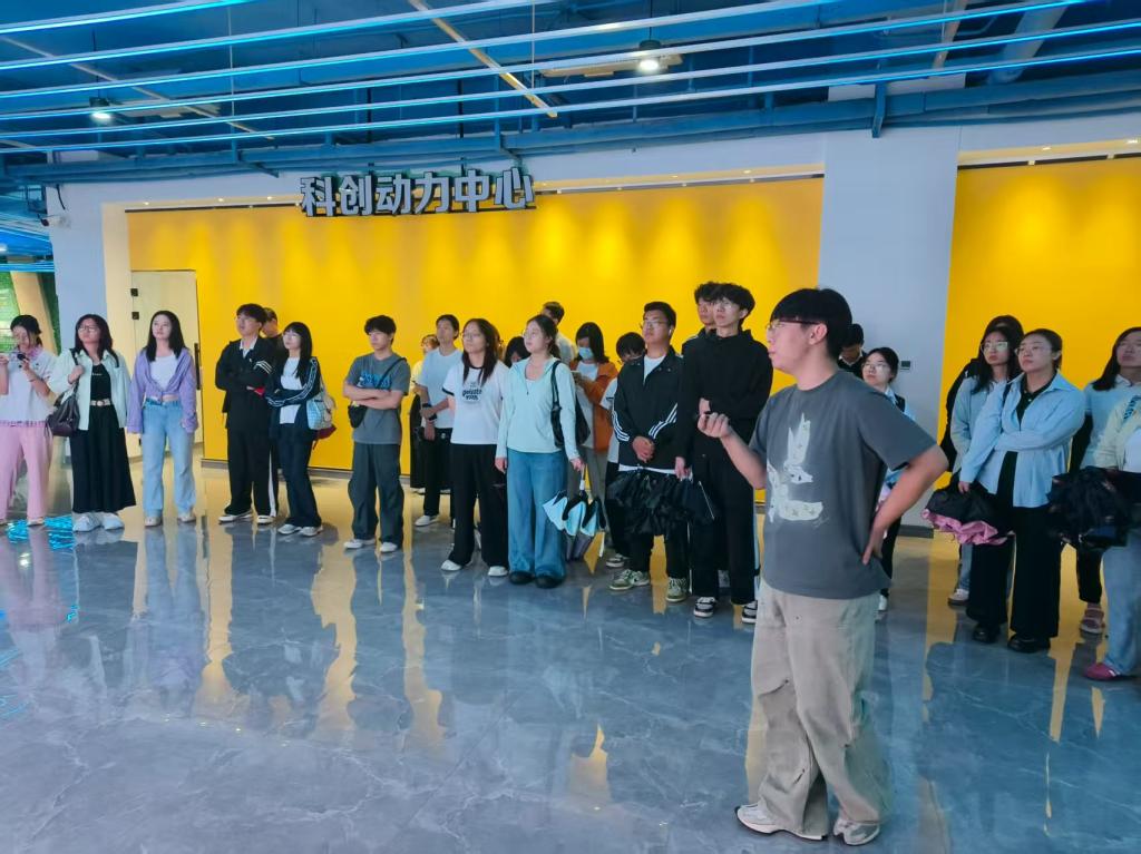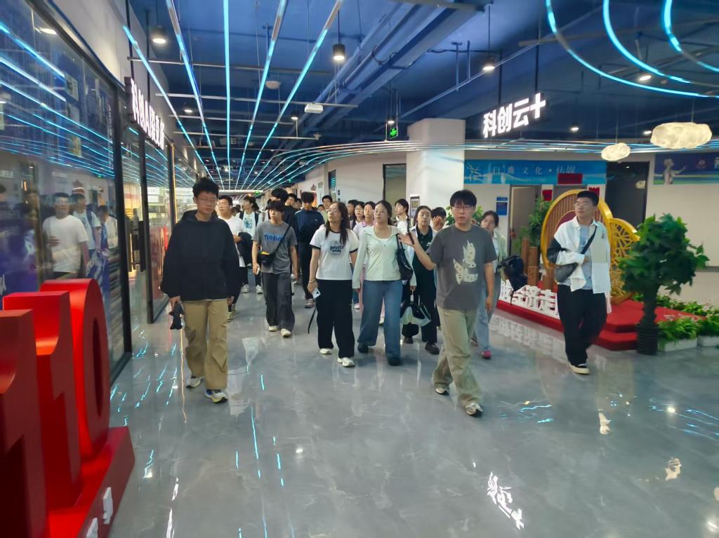随后,实践队深入园区实地参观。在讲解员的带领下,队员们走访了产业园的各个功能区,考察了入驻企业的多元化业态,包括实体制造企业和运用大数据、人工智能等技术的科技型企业。讲解员重点介绍了跨境电商的创新运营模式,如直播带货、智能物流仓储等,让队员们直观了解了从选品、营销到仓储、配送的全流程运作。