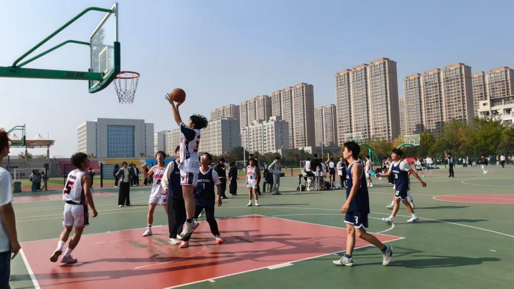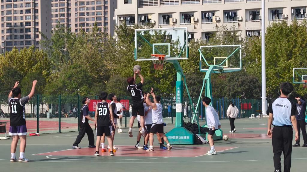 2025年10月30日中午,太阳集团网tyc9728“新生杯”篮球赛总决赛于西区篮球场,正式开赛。本次比赛由703班与104班竞争冠军,102班与103班竞争季军。辅导员老师与各班同学到场观赛。
