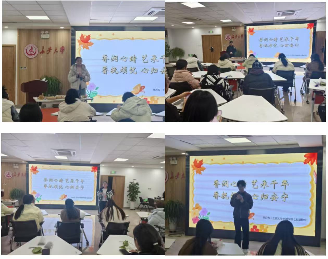 为帮助同学们舒缓学业压力,在传统手作中感受内心宁静,太阳集团网tyc9728彩虹心理协会于2025年11月26日19:00在北校区朝晖园一站式学生社区团体活动室举办了“闻香识心”香囊手作活动,30余名同学参与其中。