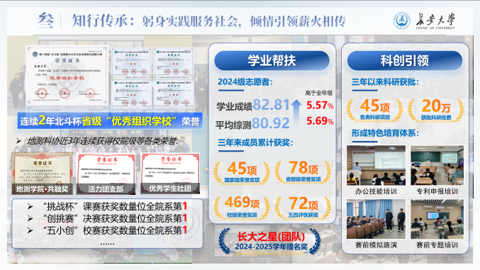 在成果转化方面,他带领团队自主研制低成本、小型化北斗/GNSS一体化监测设备,搭建集实时分析与预警推送于一体的云平台,技术成果获多项采纳应用,实现了从实验室到工程现场的落地应用。