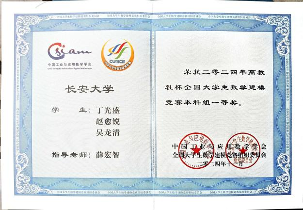 他坚持以高水平学科竞赛锤炼跨学科能力,作为队长斩获2024年全国大学生数学建模竞赛全国一等奖(近两届全校唯一)、第十九届“挑战杯”课外赛主体赛全国三等奖,并获得第十四届“北斗杯”全国一等奖(本科组赛道全国唯一),刷新学校在该赛事中的历史最好成绩。团队也荣获“长大标兵奖·长大之星(团队)”荣誉称号。