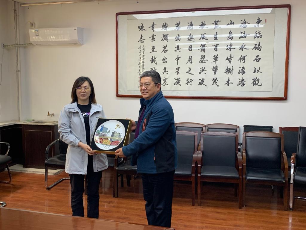 座谈会最后,院党委书记戴宏老师代表学院向西安大地测绘股份有限公司赠送校庆纪念品,校企双方合影留念。