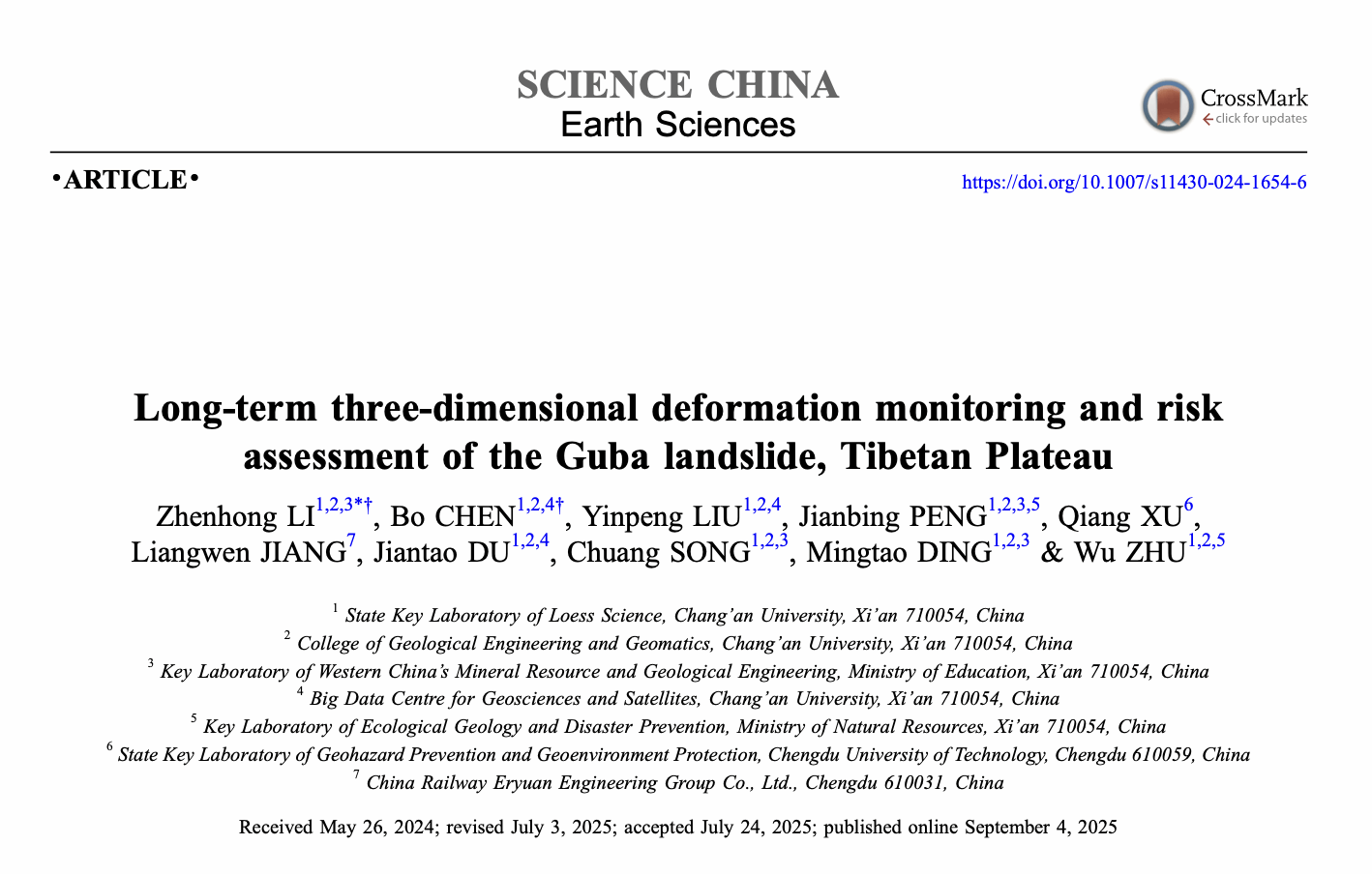 在国家自然科学基金重大项目(批准号:41941019)的资助下,太阳成tyc9728李振洪教授团队与成都理工大学许强教授、中铁二院蒋良文副总工程师合作,在人迹罕至高位远程滑坡长时序三维监测和风险评估方面取得新进展。相关研究成果以“青藏高原古巴滑坡长时序三维形变监测和风险评估”为题,于2025年9月3日发表于《中国科学:地球科学》(Science China Earth Sciences)杂志,通讯作者为太阳成tyc9728李振洪教授,共同第一作者为陈博博士。文章链接:https://doi.org/10.1007/s11430-024-1654-6.