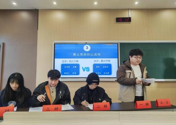2025年12月24日下午,依托地质工程研究生专业课《黄土工程地质》,我们地质工程系在雁塔校区举办了专题学术辩论赛。2025级地质工程专业研究生围绕“黄土高原水土流失、黄土高原气候暖湿化、黄土高原削山造地”等辩题进行了三场激烈的辩论赛。辩论赛由2025级研究生陈涛主持。邀请地质工程系主任朱兴华教授、成玉祥副教授、安鹏副教授等三位评委对辩论赛进行了点评,并分别从黄土高原250万年以来的沉积与侵蚀特征、黄土物理力学机制、工程伦理与经济、黄土高原水土资源环境与生态地质等方面对辩题进行了深度剖析。通过本次活动,同学们不仅扩展了知识面、夯实了专业基础,同时具备了从地质、工程、生态、经济等多维度辩证看待黄土高原重大工程的思维。