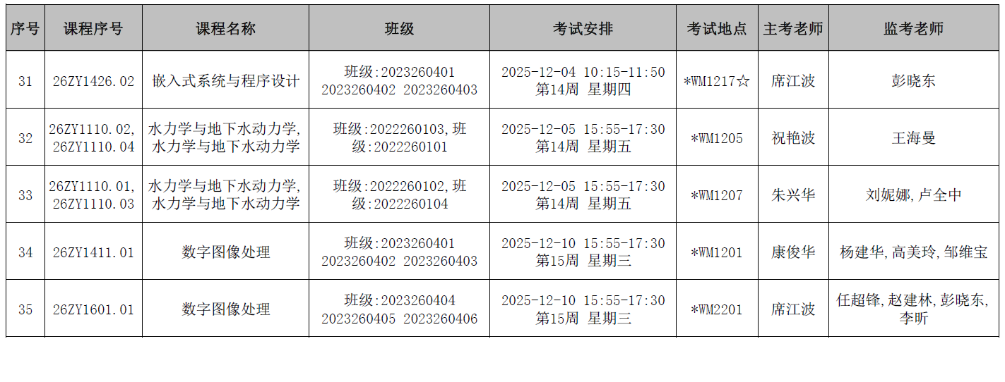 上一条:关于举办学习宣传贯彻学校第五次党代会精神系列活动的通知 下一条:【25-26-1学期监考安排(本科)①】高等数学、大学物理、普通化学-期中考试监考安排