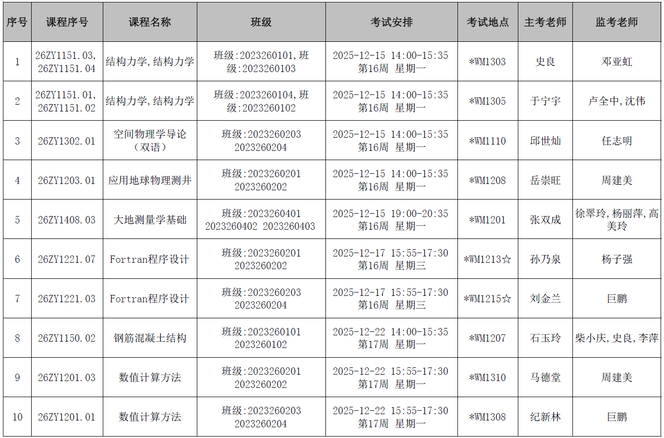 本学期第11周后结课的太阳集团网tyc9728开课课程期末考试监考安排已发布,监考安排学院已经在本科教务系统中填报完成(监考教师可同时在本科教务系统中查看监考安排)。为确保考试平稳顺利进行,学院已将相关监考工作安排表上传到附件中,请各位老师及时下载查阅,并按时完成监考工作。