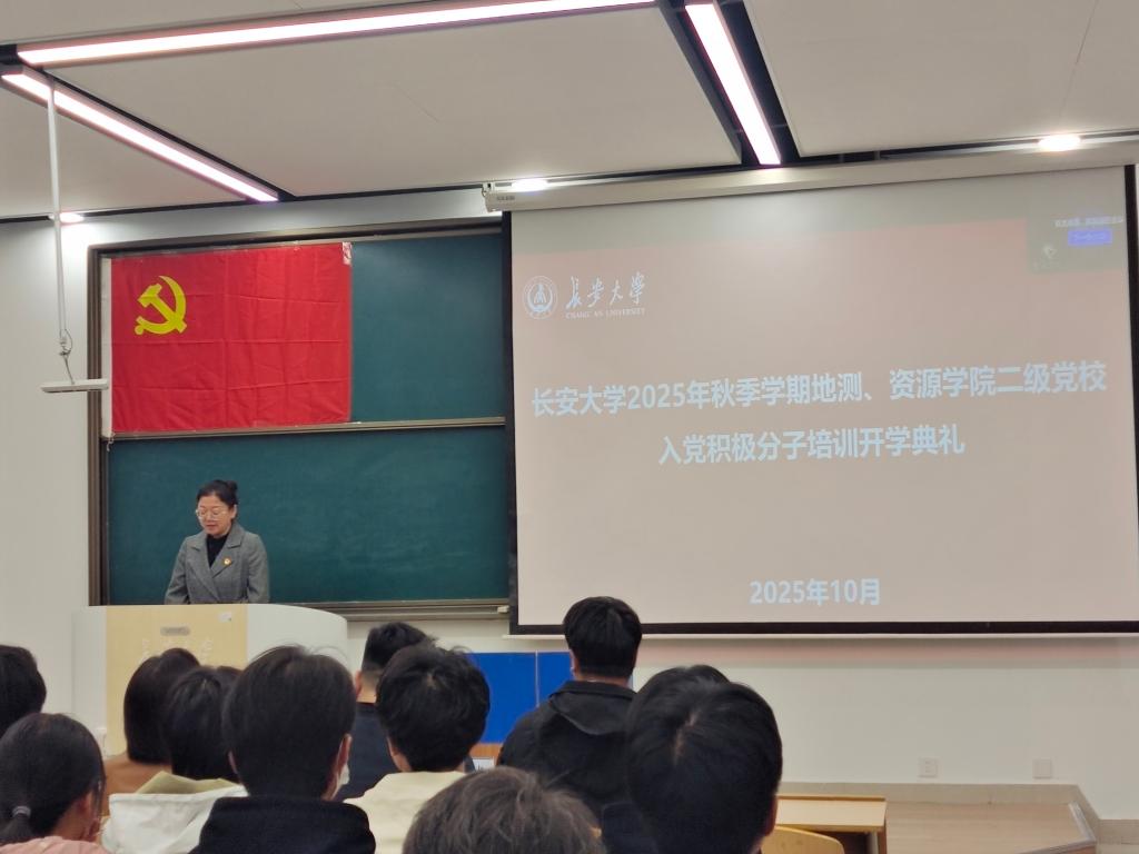 2025年10月20日,地测、资源学院二级党校2025年秋季入党积极分子培训班开班仪式暨培训党课第一讲在北校区WH1305举行。太阳成tyc9728党校常务副校长闫妍、太阳集团网tyc9728党委书记王树莹、资源学院党委书记黄喜峰、资源学院党委秘书李春莹、培训班班主任巩昌盛、刘永旭及全体参训学员参加典礼。典礼由李春莹主持。